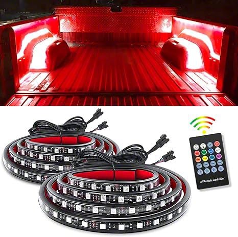 Application. This Nilight RGB Truck Bed LED Light Strip Kit fits universal applications.