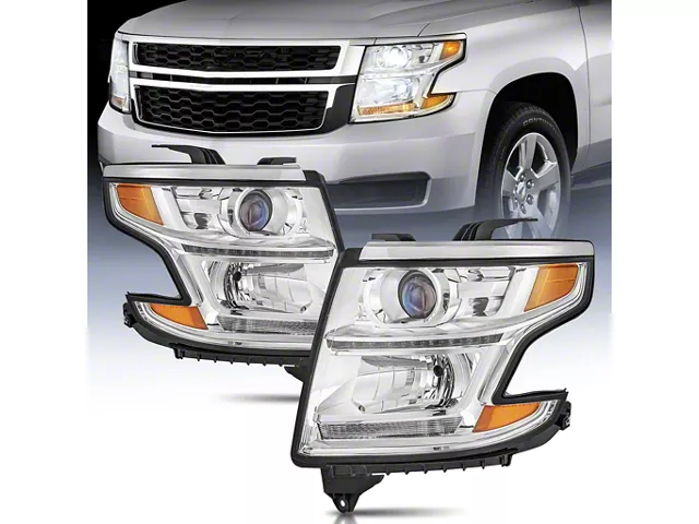 Enhanced Visibility and Style. Upgrade the lighting on your 2015-2020 Tahoe equipped with factory halogen headlights with the Nilight Headlights. These headlights feature a clear transparent lens with amber corners and a polished chrome finish housing, offering a stock style look that integrates seamlessly with your vehicle's design. Designed to be DOT and SAE compliant, they ensure your vehicle remains within road safety standards while enhancing visibility and appearance.
