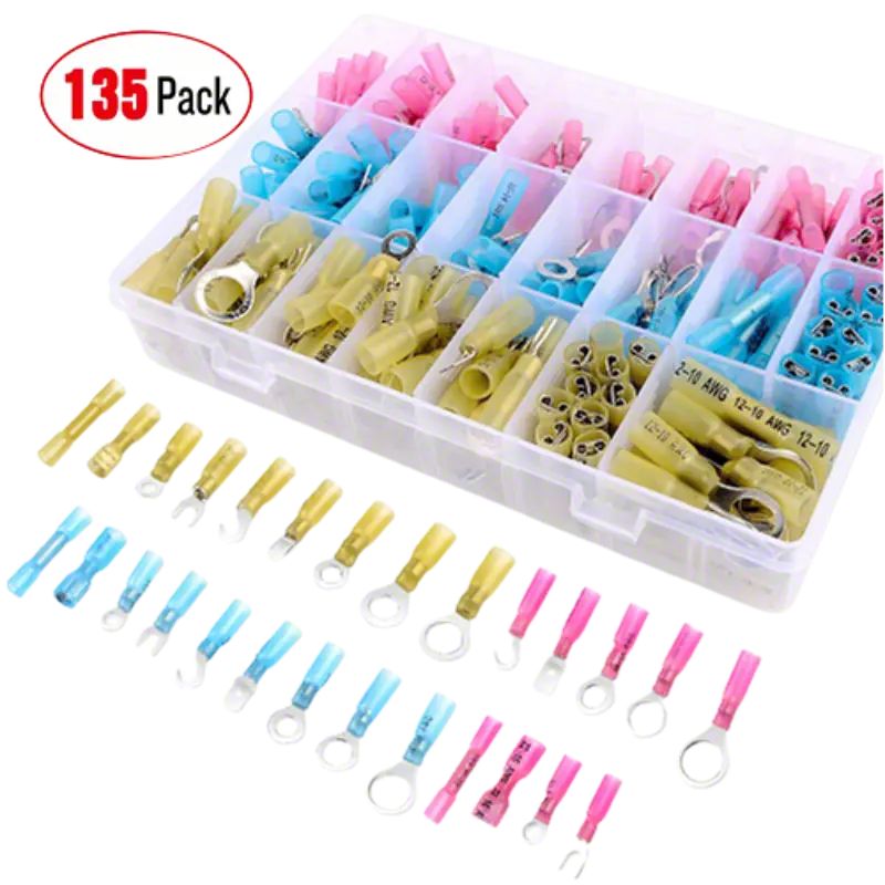 Nilight - 50006R 135 PCS Heat Shrink Wire Connectors - Electrical Terminals Kit - Marine Automotive Crimp Connector Assortment - Ring Fork Hook Spade Butt Splices