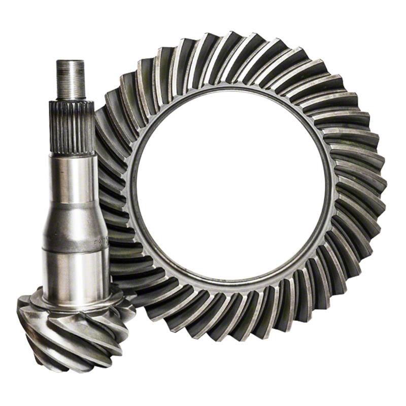Performance. The Nitro Gear & Axle 9.75-Inch Ring and Pinion Gear Kit; 3.55 Gear Ratio can be advantageous for off-road enthusiasts. It provides a good balance between low-end torque and highway-friendly cruising RPMs, making it suitable for various off-road terrains and obstacles. Whether navigating steep inclines or rough trails, the F-150 equipped with this gear ratio kit can maintain traction and power more effectively.