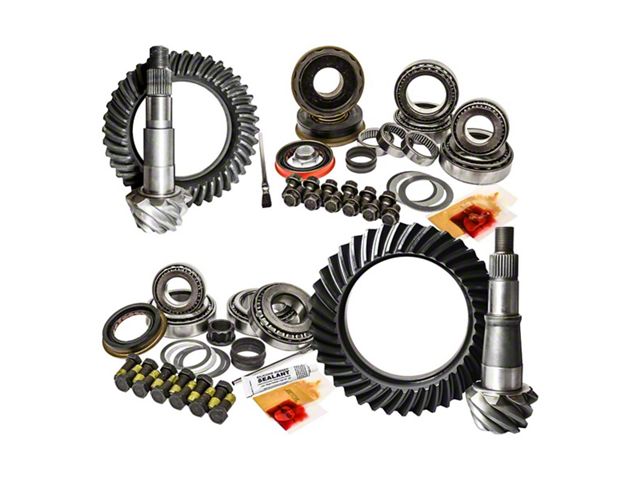 Installation. The installation process is straightforward and painless, requiring no modifications or drilling. This kit includes all necessary installation components, such as carrier shims, crush sleeves, pinion seals, pinion nuts, ring gear bolts, head bearings, tail bearings, and carrier bearings.