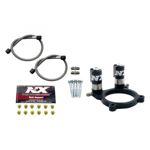 Description. The Nitrous Express V6 Ford Plate features spraybarless technology for the ultimate in atomization and distribution. The billet plate bolts between the throttle body and intake making installation quick and easy. The solenoids are integrated into the plate for a super clean look.