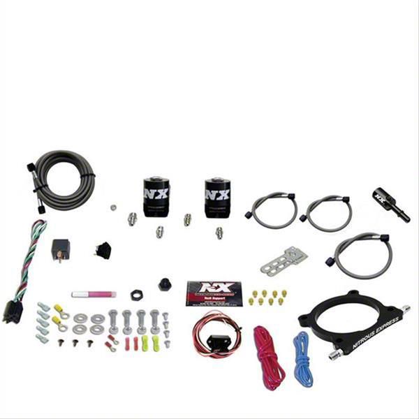 Description. Nitrous Express has combined performance, quality and easy installation in this new nitrous system engineered specifically for the 2011 Ford 5.0 Coyote engine. This system includes an Autolearn TPS switch which allows the nitrous to activate only at wide open throttle. A direct-plug-in Fuel Line Adapter is provided to simplify installation (no need to cut your factory fuel lines). The system includes the billet aluminum and carbon fiber Lightning series solenoids, billet aluminum nitrous plate, nitrous bottle with the new billet aluminum Lightning 45 bottle valve, extra long stainless braided N2O line, stainless bottle brackets, master arming switch, relay, relay harness and all necessary hardware to complete the installation. Includes jetting for 50, 75, 100, 125, 150, 200 and 250HP.  Fits 2011 Ford GT Mustangs with the 5.0L 4 valve coyote engine