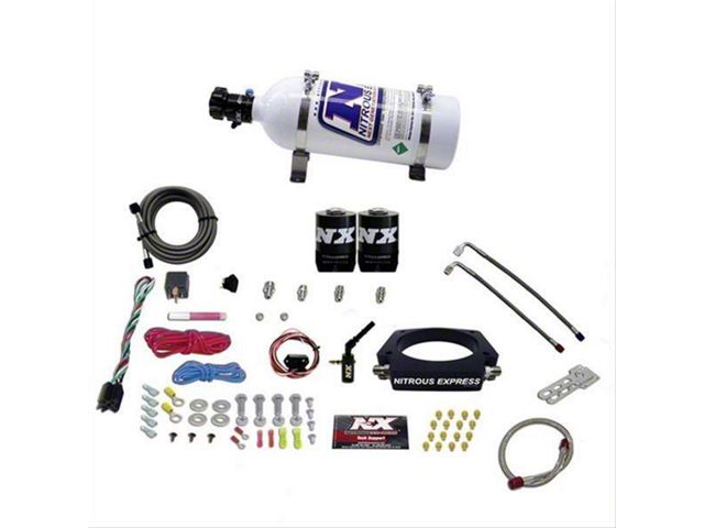 Description. The Nitrous Express 2014-up GM 6.2L nitrous plate system features Spraybarless technology for the ultimate in atomization and distribution. The billet plate bolts between the throttle body and intake making installation quick and easy. The solenoids are integrated into the plate for a super clean look and easy install. A direct-plug-in Fuel Line Adapter is provided to simplify installation (no need to cut your factory fuel lines). This system includes a TPS Autolearn switch so the nitrous only activates at wide open throttle and automatically turns off when you let your foot off the accelerator. The system includes jetting for 35, 50, 75, 100, 125, 150, 200 and 250 horsepower. Systems include a stainless braided N2O line, master arming switch, relay, relay harness and all necessary hardware to complete the installation. Systems ordered with a nitrous bottle include the new billet aluminum Lightning 45 bottle valve and stainless bottle brackets.