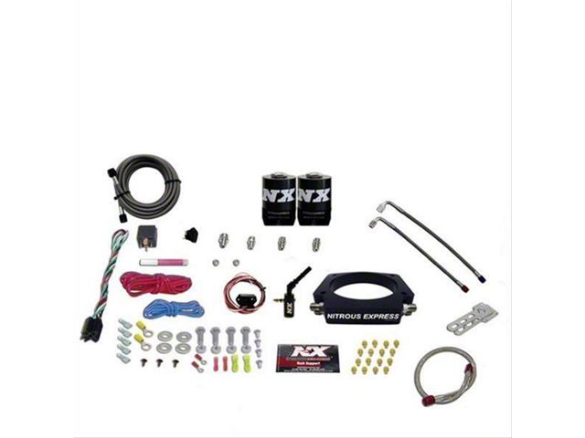 Description. The Nitrous Express 2014-up GM 6.2L nitrous plate system features Spraybarless technology for the ultimate in atomization and distribution. The billet plate bolts between the throttle body and intake making installation quick and easy. The solenoids are integrated into the plate for a super clean look and easy install. A direct-plug-in Fuel Line Adapter is provided to simplify installation (no need to cut your factory fuel lines). This system includes a TPS Autolearn switch so the nitrous only activates at wide open throttle and automatically turns off when you let your foot off the accelerator. The system includes jetting for 35, 50, 75, 100, 125, 150, 200 and 250 horsepower. Systems include a stainless braided N2O line, master arming switch, relay, relay harness and all necessary hardware to complete the installation. Systems ordered with a nitrous bottle include the new billet aluminum Lightning 45 bottle valve and stainless bottle brackets.