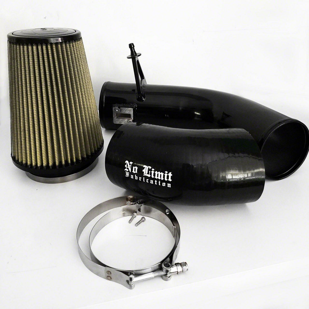 High-Quality Construction. No Limit Fabrication engineered this Cold Air Intake for high performance and reliable functionality. It comes with an aluminum intake tube, fortified by a black powder-coated finish for reinforced corrosion resistance and aggressive appeal. This 4.50-inch turbo-to-filter inlet pipe facilitates enhanced airflow and optimizes throttle response.