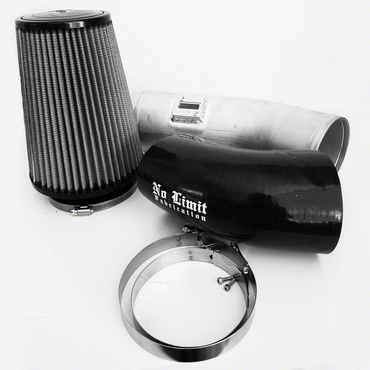 Heavy-Duty Build Quality. The No Limit Fabrication Black Stage 1 Cold Air Intake’s inlet tube is crafted from high-grade aluminum alloy for strength and corrosion resistance minus the weight. This inlet tube is precision-fabricated for a tight fit. Also, this intake’s elbow coupling is constructed from heat-resistant synthetic material for durability. Lastly, the inlet tube is finished in a black powder coating giving your engine bay a bold look.