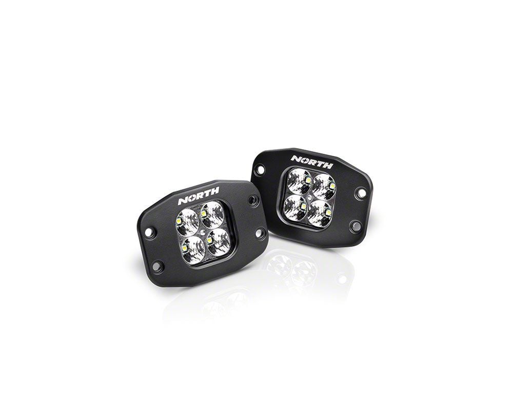 Improved Visibility on Any Terrain. Illuminate the darkness with the North Lights 2-Inch Flush Mount LED Lights, designed to cast a bright white light across any terrain. With a powerful output of 1940 lumens and a flood beam pattern, these compact 2-inch lights ensure wide visibility whether mounted on the front or rear side bumper, or on a roof rack.