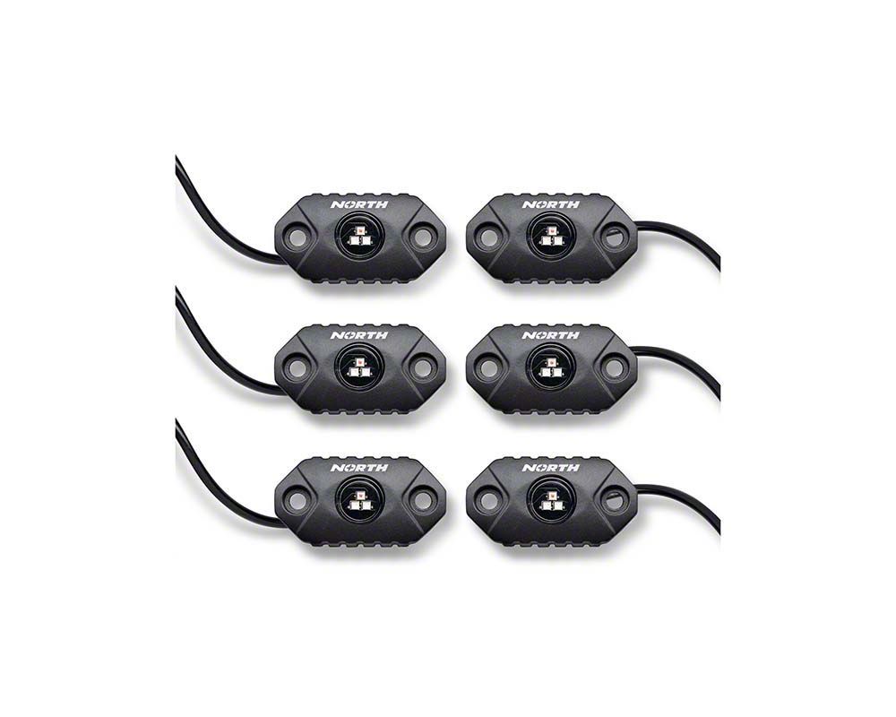 Bright and Durable LED Rock Lights. The North Lights 8-Piece LED Rock Lights provide enhanced illumination and visibility, making them a great addition to any vehicle. Whether used for off-road adventures or ambient lighting, these rock lights are designed to withstand extreme conditions, ensuring consistent performance in harsh environments. Featuring RGB lighting, they allow customization to match any mood or vehicle aesthetic.