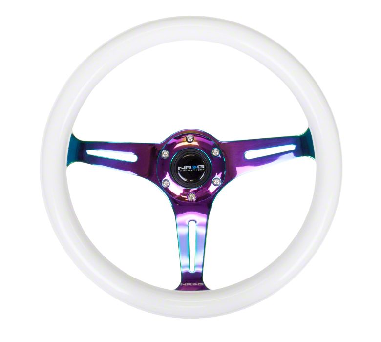 Unique, Eye-Catching Cabin Centerpiece. This NRG Classics wheel fuses traditional wood-grain styling with futuristic glow-in-the-dark accents, creating a standout focal point in any cockpit. The padded leather rim offers a comfortable, secure grip, while the deep dish fosters precise control during spirited driving or track use.