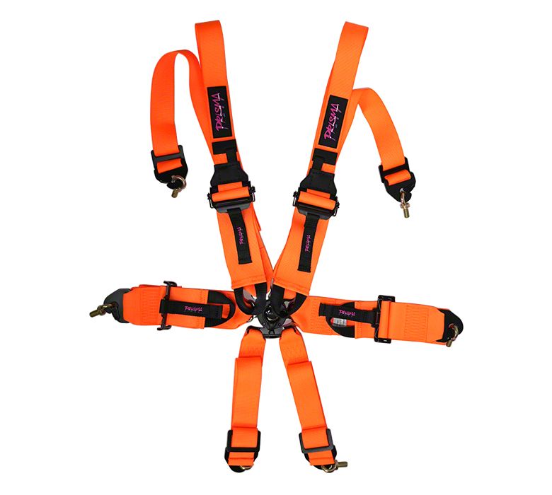 NRG Innovations FIA HANS Approved 6-Point Rotary Cam-Lock Racing Seat Belt Harness; Neon Orange with Prisma Logo (Universal; Some Adaptation May Be Required)