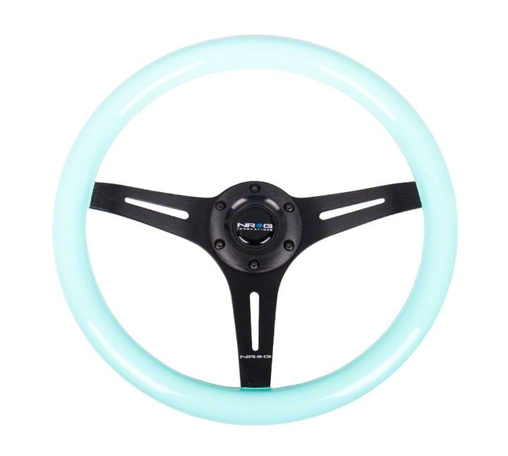 NRG Innovations Classic Wood Grain 350mm Steering Wheel; Black and Minty Fresh
