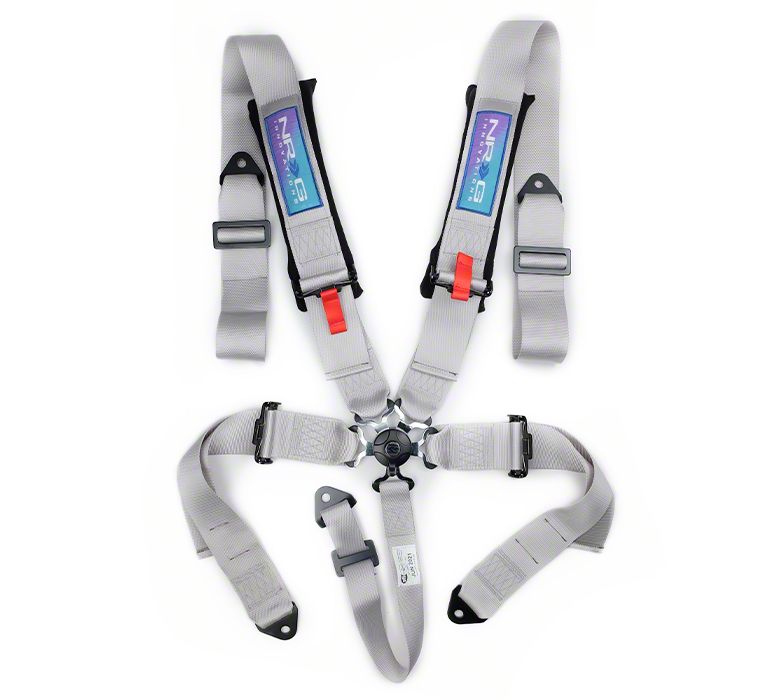 Application. The NRG Innovations SFI 16.1 5-Point Cam-Lock Racing Seat Belt Harness in Silver is designed for universal fitment and may require adaptation.