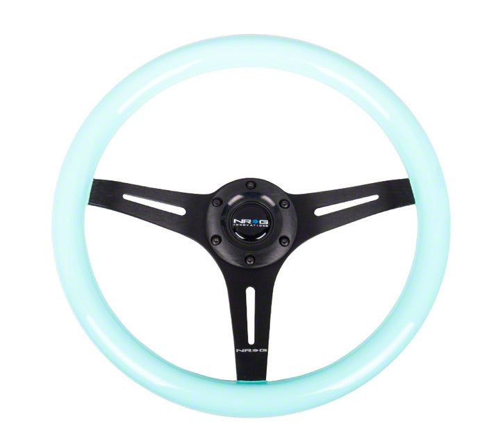 NRG Innovations Classic Wood Grain 350mm Steering Wheel; Black and Minty Fresh (Universal; Some Adaptation May Be Required)