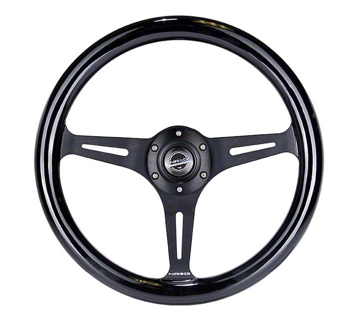 Classic Wood Grain Steering Wheel. The NRG Innovations Classic Wood Grain 350mm Steering Wheel is designed to provide a stylish, vintage-inspired upgrade to your vehicle's interior. It enhances both the look and feel of your driving experience, offering a refined touch that blends classic elegance with modern functionality. Ideal for restoration projects, it adds a unique and personalized appeal to any vehicle.