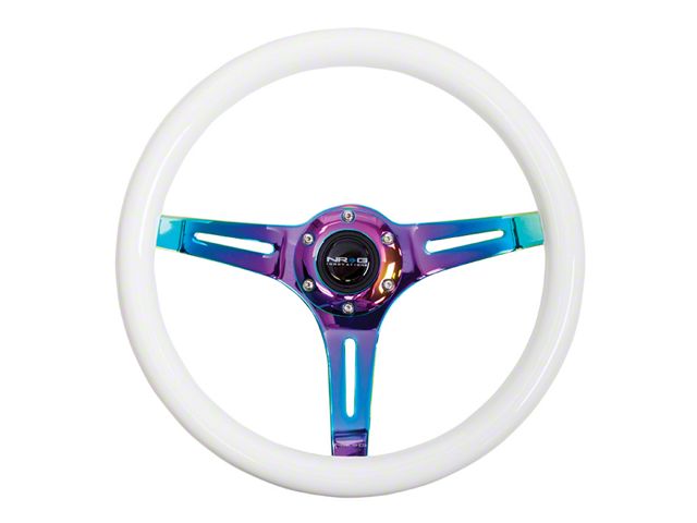 Bold Style and Performance Handling. The NRG Innovations Classic Wood Grain 350mm Steering Wheel is a striking and functional upgrade that enhances both the aesthetics and driving experience of your vehicle. Featuring a vibrant neochrome finish with glow-in-the-dark detailing, this steering wheel offers a unique look that stands out both day and night. Designed with performance handling in mind, it provides superior grip and driver control during spirited driving or daily commutes.