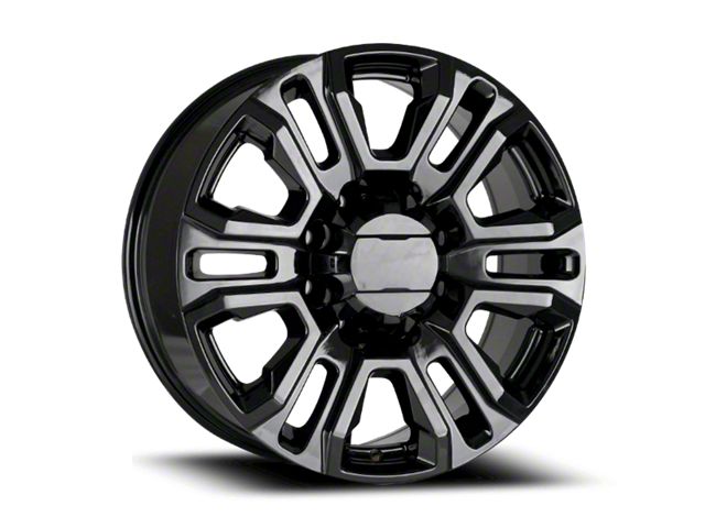 The 22x8.5 OE Concept GMC Sierra HD Denali Replica Gloss Black 8-Lug Wheel; 22x8.5; 15mm Offset is completed in a gloss black finish that will make everyone green with envy. For added protection and good looks, this wheel features a durable clear coat that is tough enough to stand up against the hazards of everyday driving.