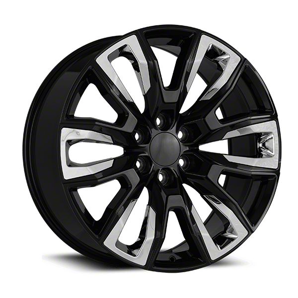 OE Concept Sierra Denali Replica Black with Chrome Inserts 6-Lug Wheel; 22x9; 28mm Offset This wheel features sophisticated styling that enhances your vehicle's appearance with refined design elements and premium craftsmanship. Its distinctive aesthetic provides an upgraded look that complements a wide range of vehicles. The thoughtful engineering ensures a proper fit while delivering lasting visual appeal.