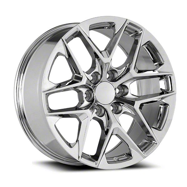 OE Concept GMC Snowflake Replica Chrome 6-Lug Wheel; 24x10; 24mm Offset This wheel features sophisticated styling that enhances your vehicle's appearance with refined design elements and premium craftsmanship. Its distinctive aesthetic provides an upgraded look that complements a wide range of vehicles. The thoughtful engineering ensures a proper fit while delivering lasting visual appeal.