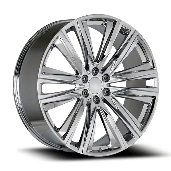The 22x9 OE Concept Escalade Platinum Replica Chrome 6-Lug Wheel; 22x9; 28mm Offset is completed in a polished chrome finish that will make everyone green with envy. For added protection and good looks, this wheel features a durable clear coat that is tough enough to stand up against the hazards of everyday driving.