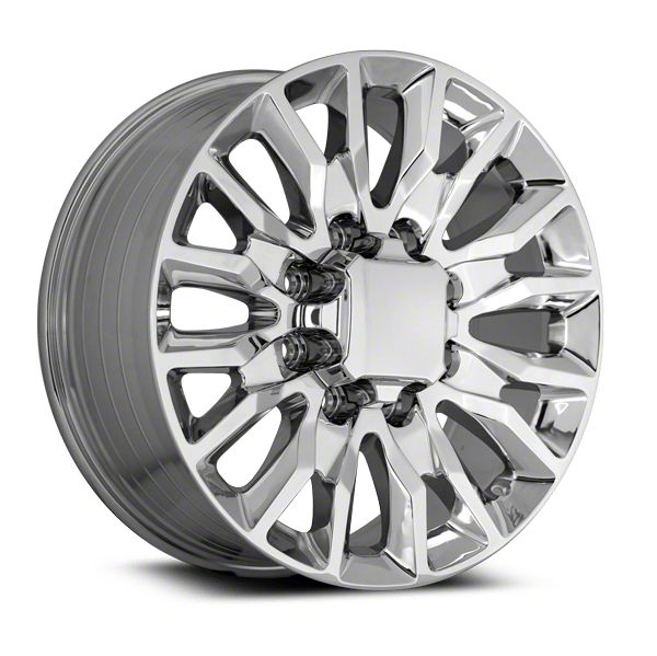 The 22x8.5 OE Concept Silverado HD Replica Chrome 8-Lug Wheel; 22x8.5; 44mm Offset is completed in a polished chrome finish that will make everyone green with envy. For added protection and good looks, this wheel features a durable clear coat that is tough enough to stand up against the hazards of everyday driving.