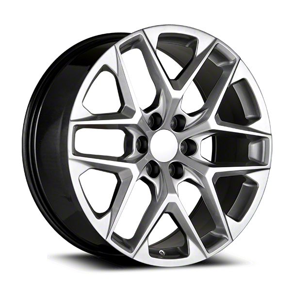 OE Concept GMC Snowflake Replica Silver Machined 6-Lug Wheel; 24x10; 54mm Offset This wheel features sophisticated styling that enhances your vehicle's appearance with refined design elements and premium craftsmanship. Its distinctive aesthetic provides an upgraded look that complements a wide range of vehicles. The thoughtful engineering ensures a proper fit while delivering lasting visual appeal.