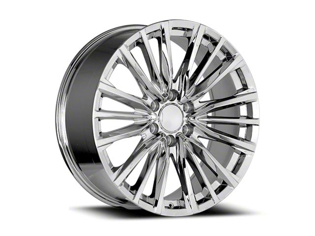 The 24x10 OE Concept Cadillac V Replica Chrome 6-Lug Wheel; 24x10; 31mm Offset is completed in a polished chrome finish that will make everyone green with envy. For added protection and good looks, this wheel features a durable clear coat that is tough enough to stand up against the hazards of everyday driving.