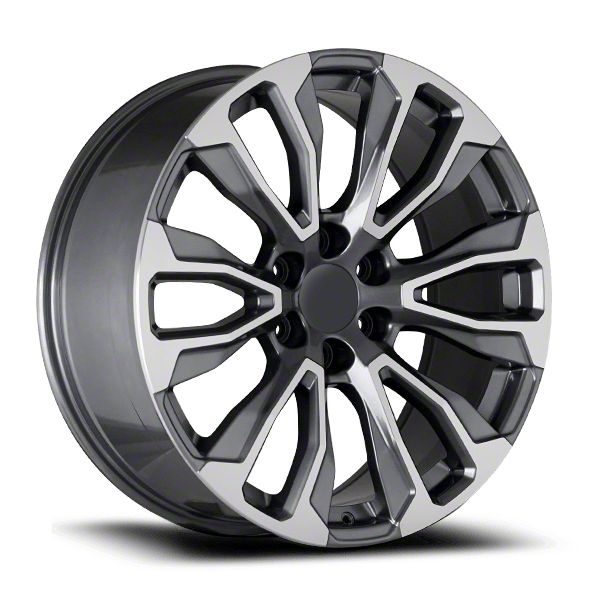 OE Concept Sierra AT4 Replica Gunmetal Machined 6-Lug Wheel; 22x9; 24mm Offset This wheel brings a commanding presence with its distinct design, making it a bold choice for enthusiasts looking to upgrade their vehicle’s look. The premium finish and attention to detail reflect the high standards of OE Concept, giving any vehicle a modern and aggressive edge. Its styling pairs seamlessly with rugged builds or sleek street setups alike, elevating curb appeal with ease.