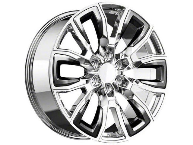 This 22x9 OE Revolution G-37 Nano Chrome and Black Inserts 6-Lug Wheel; 22x9; 31mm Offset is completed in a high-quality chrome finish with black inserts to make your wheel the envy of everyone. For added looks and durability, the wheels has a durable clear coat that withstand the rigors of daily driving.