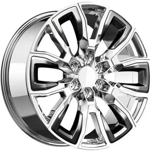 This 22x9 OE Revolution G-37 Nano Chrome and Black Inserts 6-Lug Wheel; 22x9; 31mm Offset is completed in a high-quality chrome finish with black inserts to make your wheel the envy of everyone. For added looks and durability, the wheels has a durable clear coat that withstand the rigors of daily driving.