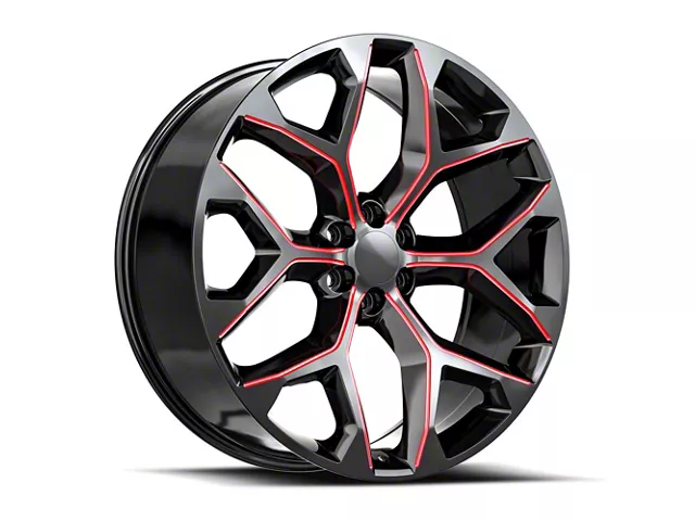 Application. This OE Revolution G-2009 Gloss Black and Red Milled 6-Lug Wheel; 26x10; 24mm Offset, with a bolt pattern of 6 x 139.7mm (6 x 5.5-Inch), ensures precise alignment and enhanced driving stability. Designed to fit 2019-2026 Silverado 1500 models, this wheel is sold individually.