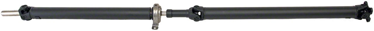 Construction and Appearance. Built from rugged steel tubing with a durable rust‑protected black finish, this two‑piece driveshaft is pre‑balanced and features all-new yokes, tubes, CV, and U‑joints. The serviceable universal joints (non‑staked) enable future maintenance without full replacement.
