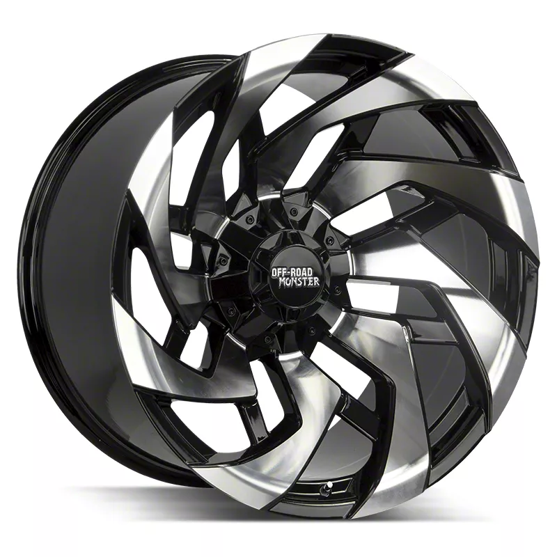 This 22x12 Off-Road Monster M24 Gloss Black Machined 8-Lug Wheel is completed in a high quality gloss black finish with machined accents for an aggressive appearance that will make others green with envy. A durable clear coat that withstands the rigors of driving.