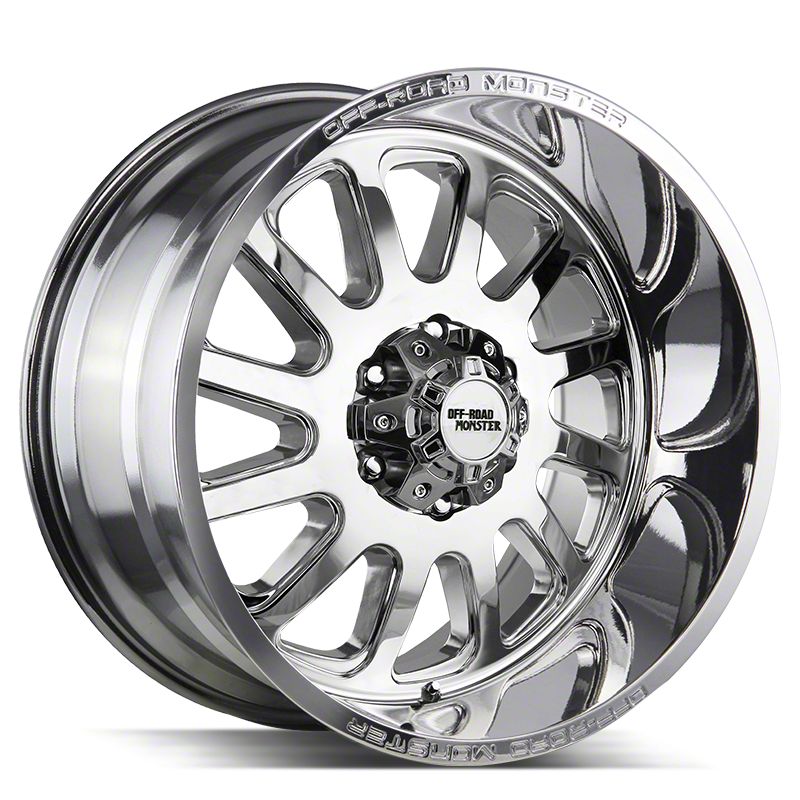 Off-Road Monster M17 Chrome 8-Lug Wheel; 20x10; -19mm Offset - Experience the sleek elegance of the Off-Road Monster wheel. Its matte black finish adds a touch of sophistication to your vehicle, enhancing its overall appearance without compromising on durability. Perfect for a variety of vehicle styles, this wheel is a testament to the brand's commitment to quality and aesthetic excellence.