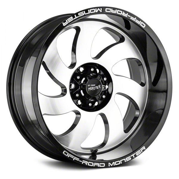 The 20x10 Off Road Monster M07 Gloss Black Machined 8-Lug Wheel is completed in a high-quality gloss black finish, with machined accents. Thanks to a durable clear coat, the finish looks amazing and also protects against the rigors of driving.