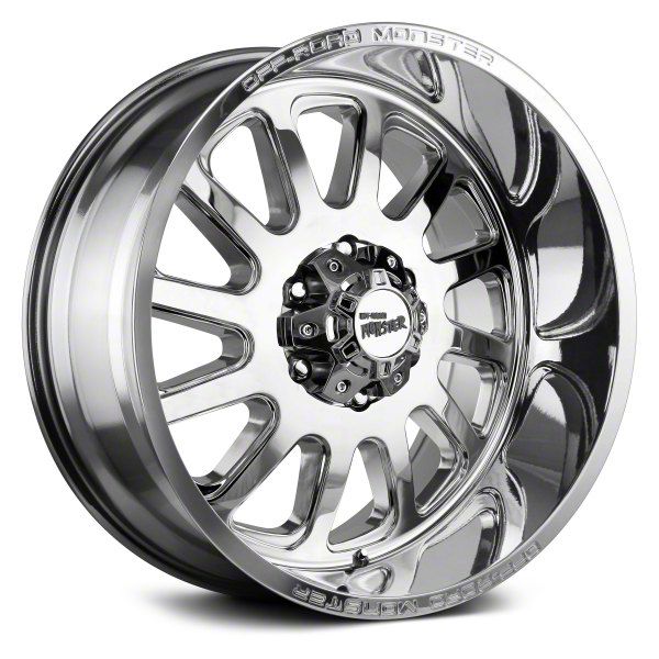 This 22x12 Off Road Monster M17 Chrome 6-Lug Wheel is completed in a high-quality, polished chrome finish that will make the wheel the envy of everyone. There is a durable clear coat that protects against driving hazards.One-Piece Cast Aluminum Construction. This wheel is manufactured using gravity casting. Gravity casting is the process of pouring a molten aluminum alloy into a wheel mold or form utilizing the earth's own gravity to help fill the mold. The result is a strong, durable wheel that has the same good looks as a more expensive wheel, at a fraction of the price.