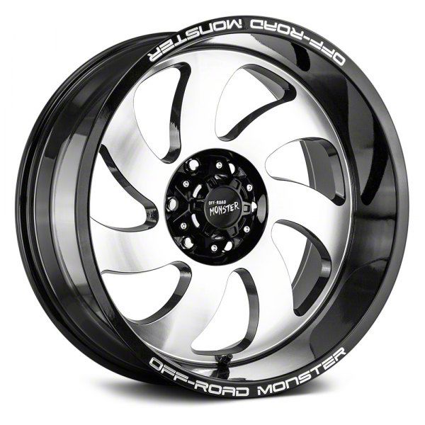 Off Road Monster M07 Gloss Black Machined 6-Lug Wheel; 22x12; -44mm Offset. The Off Road Monster M07 Gloss Black Machined 6-Lug Wheel offers a striking balance of style and refinement. Its unique design accentuates the vehicle's aesthetic, while the premium construction underscores its robust nature. This wheel is a perfect choice for those seeking both elegance and a strong visual statement.