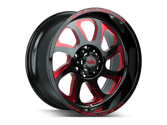 Off-Road Monster M22 Gloss Black Candy Red Milled 8-Lug Wheel; 22x12; -44mm Offset This Off-Road Monster M22 Gloss Black Candy Red Milled 8-Lug Wheel; 22x12; -44mm Offset brings a sleek and modern touch to your vehicle with its striking design. Its refined finish and bold styling make it an excellent choice for those looking to enhance their car’s visual appeal. Whether you're aiming for a sporty look or a more aggressive stance, this wheel stands out as a premium addition. Perfect for drivers who appreciate a stylish upgrade.