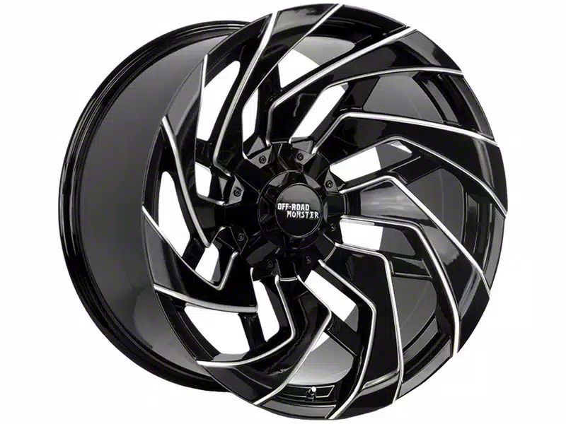 This 20x10 Off-Road Monster M24 Gloss Black Milled 6-Lug Wheel is completed in a high-quality gloss black finish with steel milled accents that will be the envy of everyone. There's a durable clear coat that protects against driving hazards.