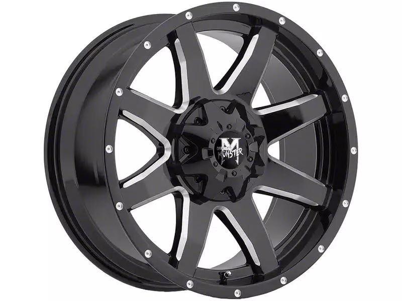 This 20x9 Off-Road Monster M08 Gloss Black Milled 5-Lug Wheel is completed in a high-quality gloss black finish with steel milled accents that will create a striking appearance. There's a durable clear coat that protects against driving hazards.