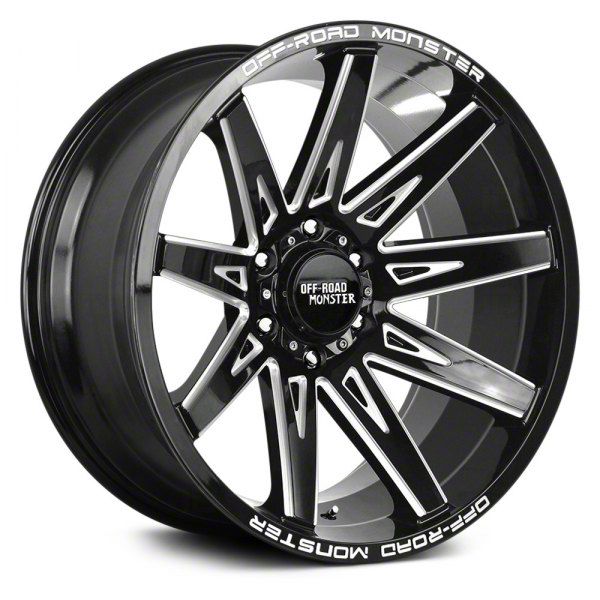 The 22x12 Off Road Monster M25 Gloss Black Milled 6-Lug Wheel is completed in a high-quality gloss black finish, with steel milled accents. Thanks to a durable clear coat, the finish looks amazing and also protects against the rigors of driving.
