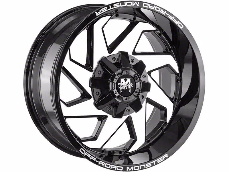 Off-Road Monster M09 Gloss Black Machined 6-Lug Wheel; 20x10; -12mm Offset exudes sophistication with its finish, offering a sleek and modern appeal to any vehicle it adorns. The design is meticulously crafted to enhance the aesthetic of your vehicle, giving it a distinctive and upscale look. Perfect for those seeking to elevate their vehicle's style, this wheel blends seamlessly with both contemporary and classic vehicle designs, making it a versatile choice for a wide range of vehicles. Its robust construction ensures durability, making it a reliable choice for drivers who value both style and quality.
