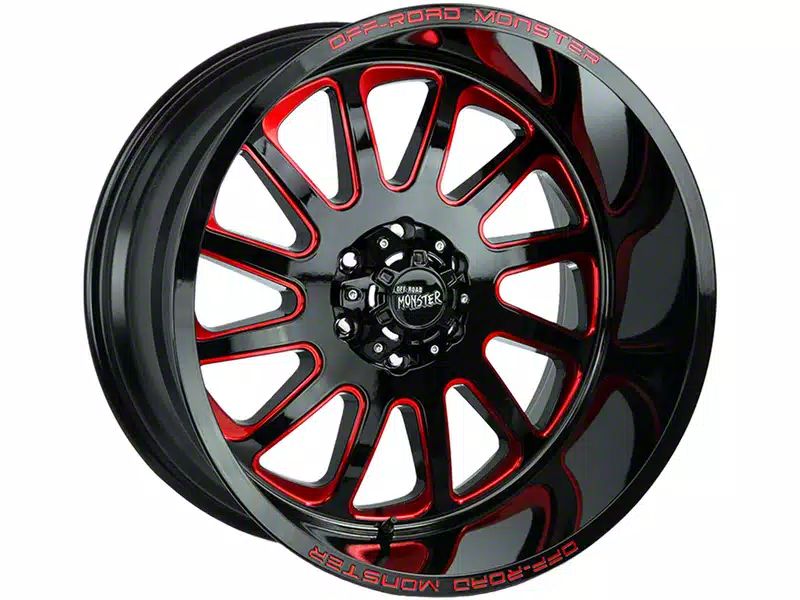 This 20x10 Off-Road Monster M17 Gloss Black Candy Red Milled 8-Lug Wheel is completed in a high-quality candy red finish with milled accents that will be the envy of everyone. For added protection and looks, there is a durable clear coat that can handle the rigors of daily driving.