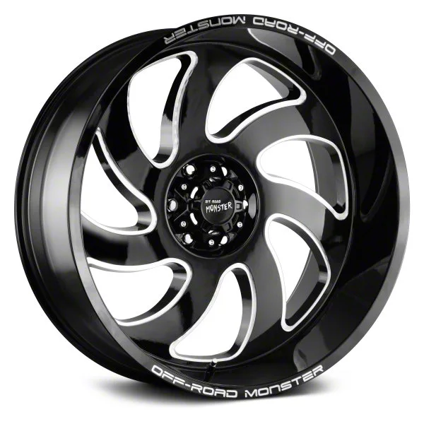 This 22x12 Off Road Monster M07 Gloss Black Milled 6-Lug Wheel is completed in a high-quality gloss black finish with steel milled accents that will create a striking appearance. There's a durable clear coat that protects against driving hazards.