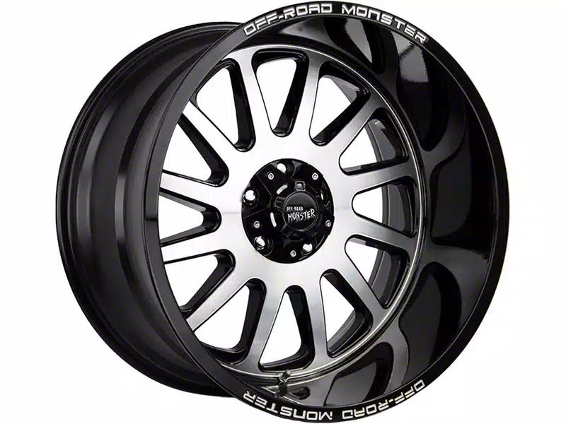This 17x9 Off-Road Monster M17 Gloss Black Machined 6-Lug Wheel is completed in a high-quality gloss black finish with machined accents to create an impressive appearance. There's a durable clear coat that protects against driving hazards.