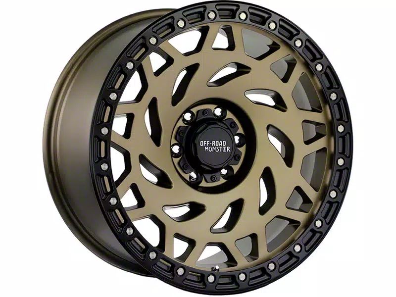 Off-Road Monster M50 Bronze Black Ring 6-Lug Wheel; 20x9.5; -12mm Offset - This wheel's elegant design will certainly enhance your vehicle's aesthetic, complementing its luxury and performance. The unique styling of this wheel makes it an ideal choice for a standout quality of your ride, reflecting the premium quality associated with the Off-Road Monster brand.