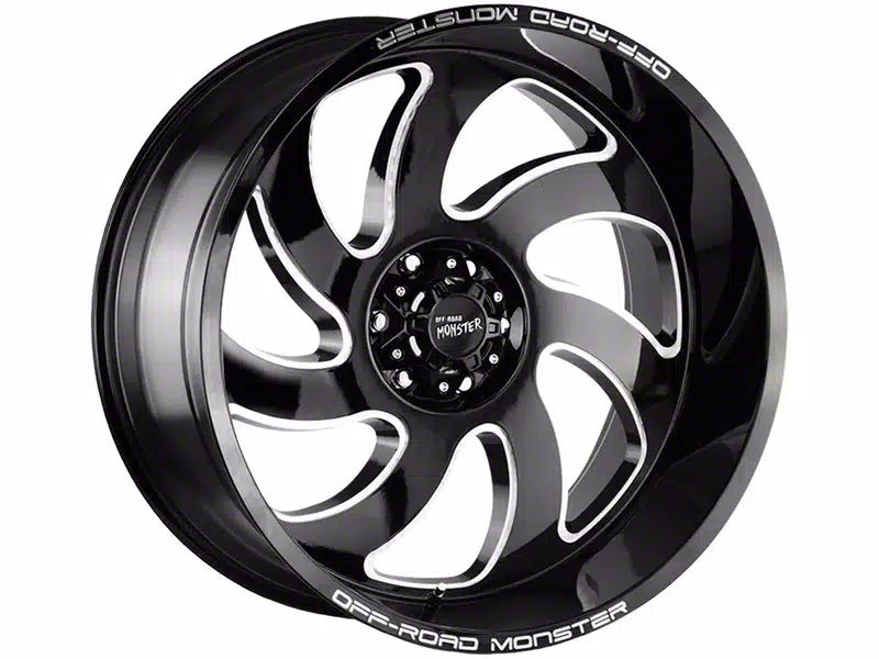 Off-Road Monster M07 Gloss Black Milled 6-Lug Wheel; 20x10; -19mm Offset. The Off-Road Monster M07 Gloss Black Milled 6-Lug Wheel offers a striking balance of style and refinement. Its unique design accentuates the vehicle's aesthetic, while the premium construction underscores its robust nature. This wheel is a perfect choice for those seeking both elegance and a strong visual statement.