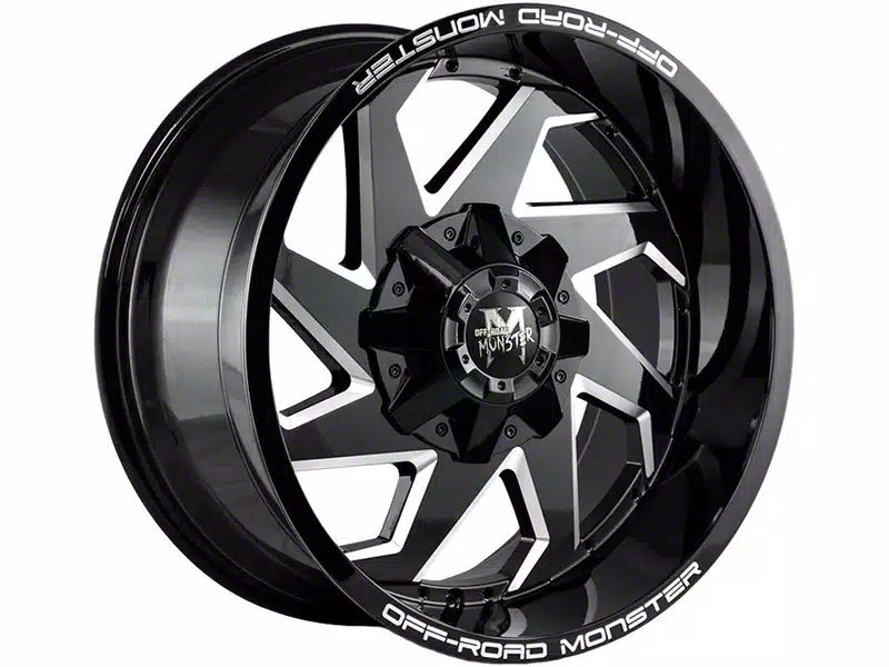 This 20x10 Off-Road Monster M09 Gloss Black Milled 6-Lug Wheel is completed in a high-quality gloss black finish with steel milled accents that will create a striking appearance. There's a durable clear coat that protects against driving hazards.