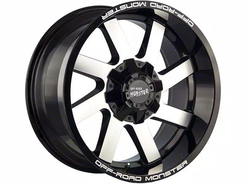 This 20x10 Off-Road Monster M80 Gloss Black Machined 6-Lug Wheel is completed in a high-quality gloss black finish with machined accents to create an impressive appearance. There's a durable clear coat that protects against driving hazards.