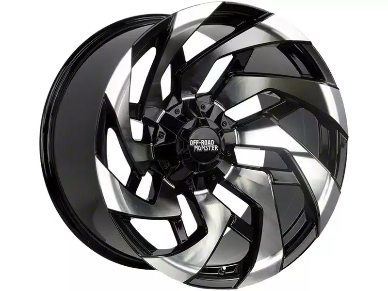 Off-Road Monster M24 Gloss Black Machined 8-Lug Wheel; 20x10; -19mm Offset - This wheel's elegant design will certainly enhance your vehicle's aesthetic, complementing its luxury and performance. The unique styling of this wheel makes it an ideal choice for a standout quality of your ride, reflecting the premium quality associated with the Off-Road Monster brand.